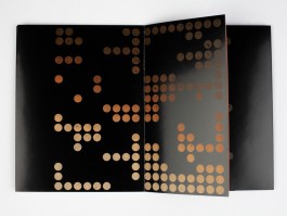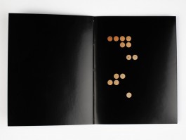 Wir verstehen das Buch als Objekt. Die Seiten sind Flächen, die sich aufschlagen lassen. Dazwischen verbergen sich Texte aus unterbrochenen Zeilen. Die Punkte werden dabei gleichzeitig zu Leerstellen und Textteilen. Sie sind Gesten der Wiederkehr, Abdrücke auf einem fremdartig leeren Untergrund. Die versteckten Bilder im Innenraum der Seiten sind abstrakte Hinweise auf Teile des menschlichen Körpers.