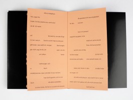 We consider the book as an object. It consists of surfaces, which are meant to be opened. Within those surfaces a text of broken lines is hidden. The dots become placeholders — both for the content and the emptiness. They symbolise a gesture of repetition as they are imprinted on a strange and empty undercoat. On the inside of two pages we placed secret images. They point towards skin, which gets turned inside out.