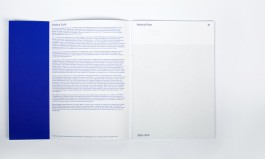 The publication creates a graphic environment that does not want to compete with the artist's work. At the same time, an orientation system is created that functions intuitively and uses the simplest graphic means. The entire design of the text layer and colour areas is realised with a pantone tone. The repro-photographs are produced in four-colour printing.